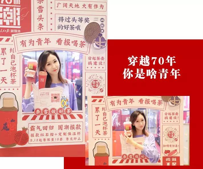 奈雪の茶 x 人民日报新媒体,国潮、报款,做新时代有为青年。这个秋天在奈雪开启喝茶看报模式!