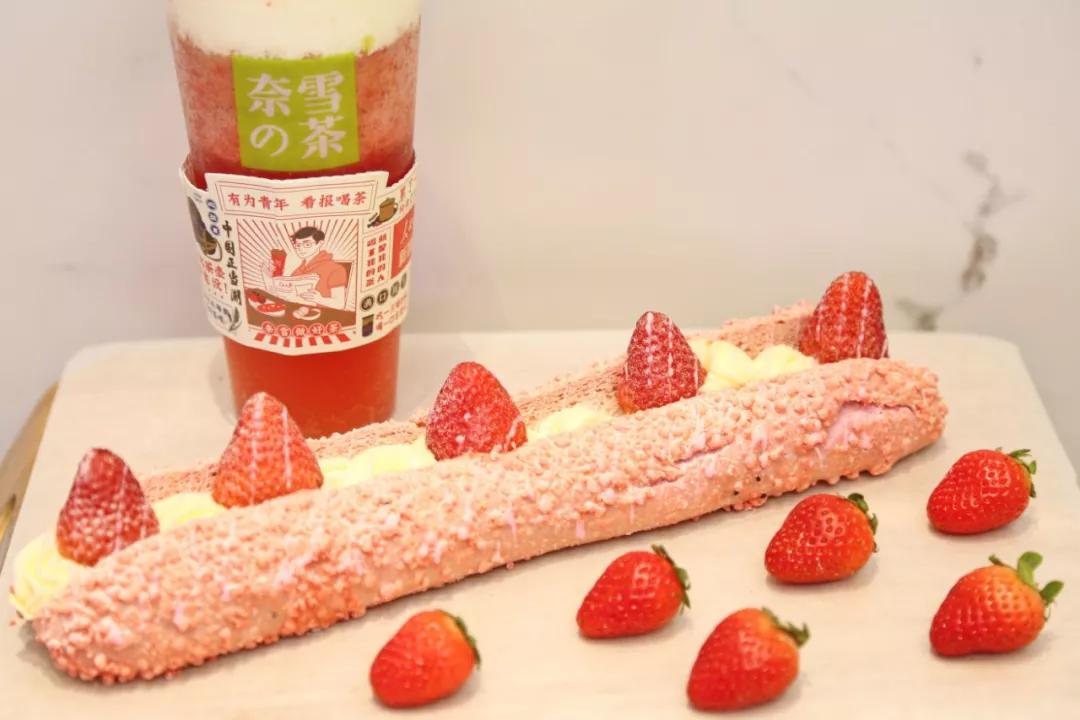 新鲜草莓、茉莉毛尖与芝士奶盖的组合,将酸甜香醇恰到好处地糅为一体,为了满足粉丝每天都喝到芝士草莓的愿望,奈雪的茶创始人直接在云南承包了165亩草莓园!