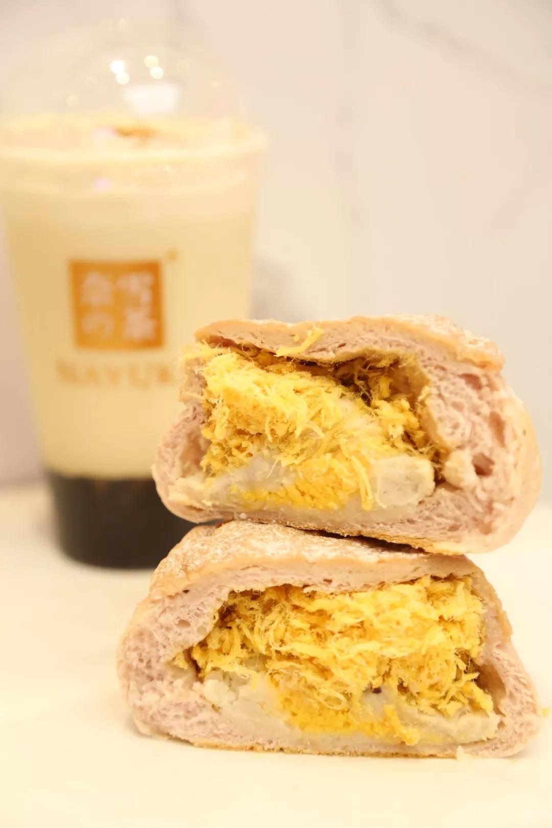 咸蛋黄简直是甜品界的百搭神器,奈雪怎么可能错过如此的美味!满满的酥脆肉松分量诚意十足,加之软糯的芋泥与咸蛋黄,一口尽是满足。