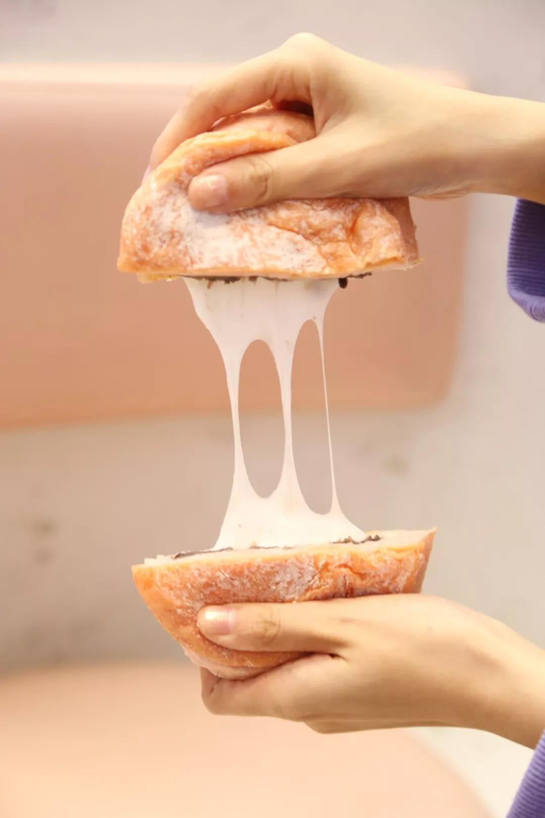 少女粉的外表下,全部是软糯的红豆,4款中麻薯最多的一款!黏黏的麻薯与欧包真是无敌绝配!奈雪对于欧包的发酵与烘焙做了创新,让面包在烘烤时更好的膨胀,伴随着小麦香。